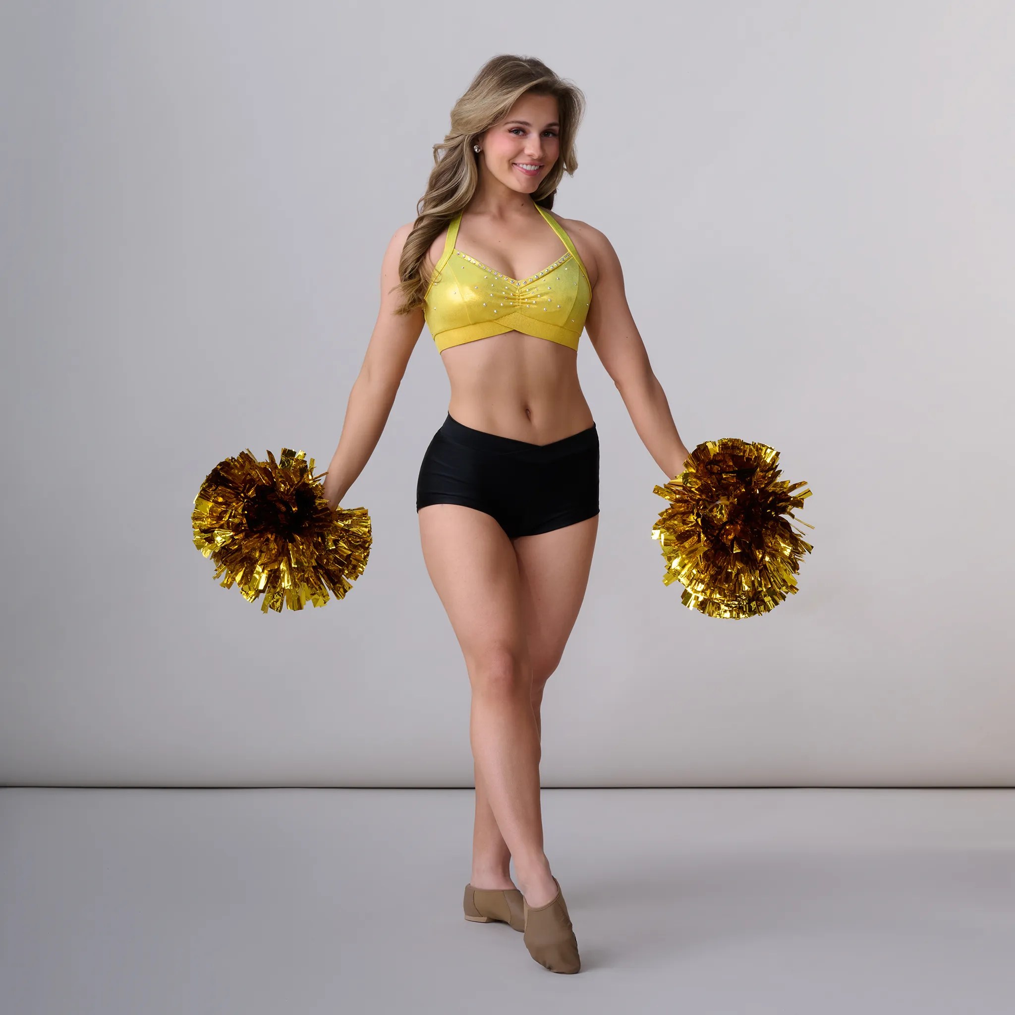 There is nothing basic about our cinched front, basic Pro-Fit halter-bra, as it’s perfect for professional cheerleading tryouts or auditions, or as a basic staple for your pro cheer uniforms. This bra top has princess seams for shaping and a Pro-Fit non-roll, underbust V-band for stay-put support. It also has a back neck hook closure and is fully lined with moisture-wicking Supplex.